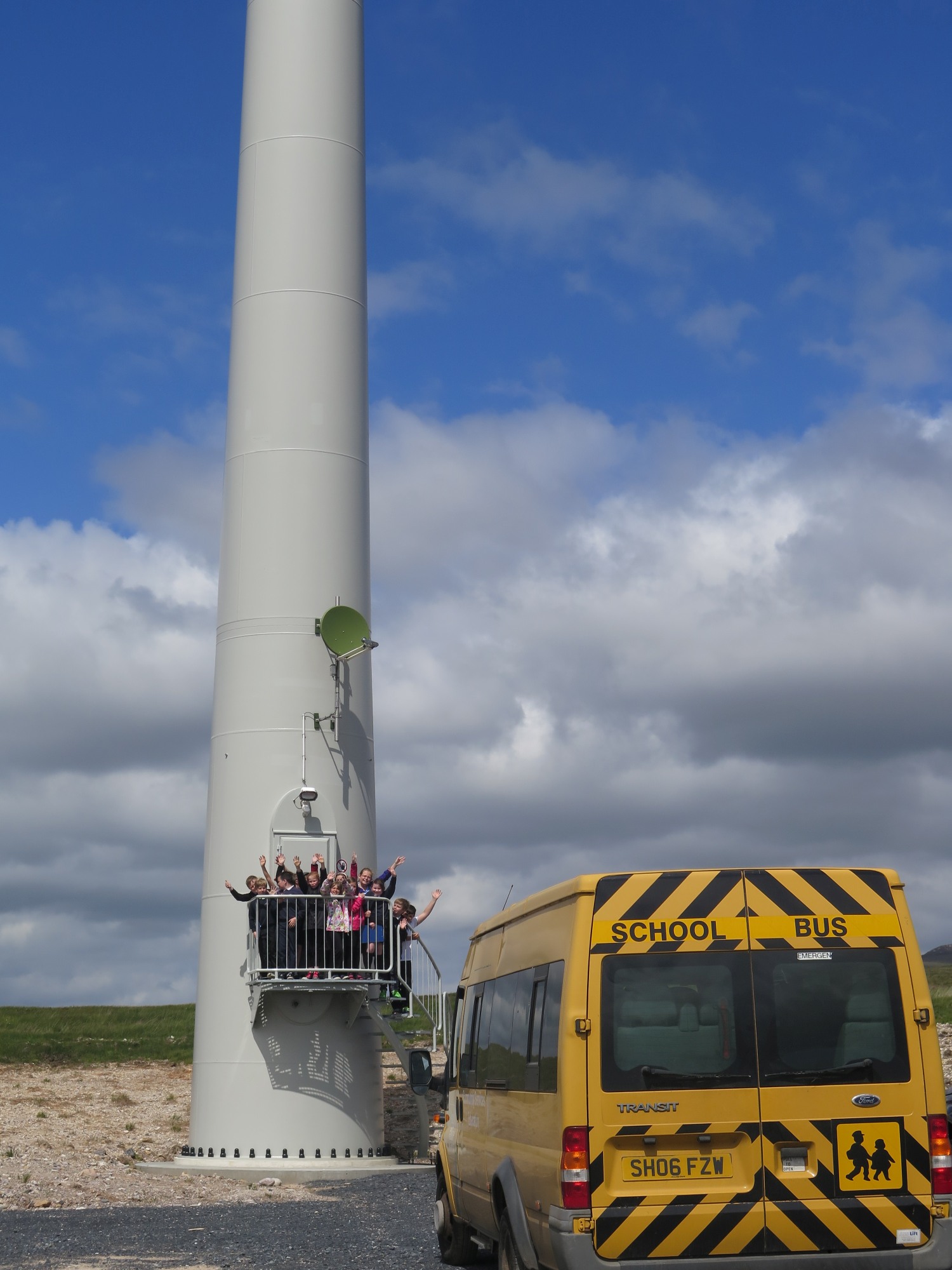 At the end of term recently, 15 pupils from Bowmore Primary 5/6 visited the Community Wind Turbine along with their teacher, Lynne MacDougal. Malcolm Ogilvie, vice chair of Islay Energy Community Benefit Society was there to answer some very intelligent questions, and took the photo. If any other groups would like to arrange a visit (and sorry but you cannot climb up it!) please contact Geunda Young on 01496 301413 or email info@islayenergycbs.co.uk.